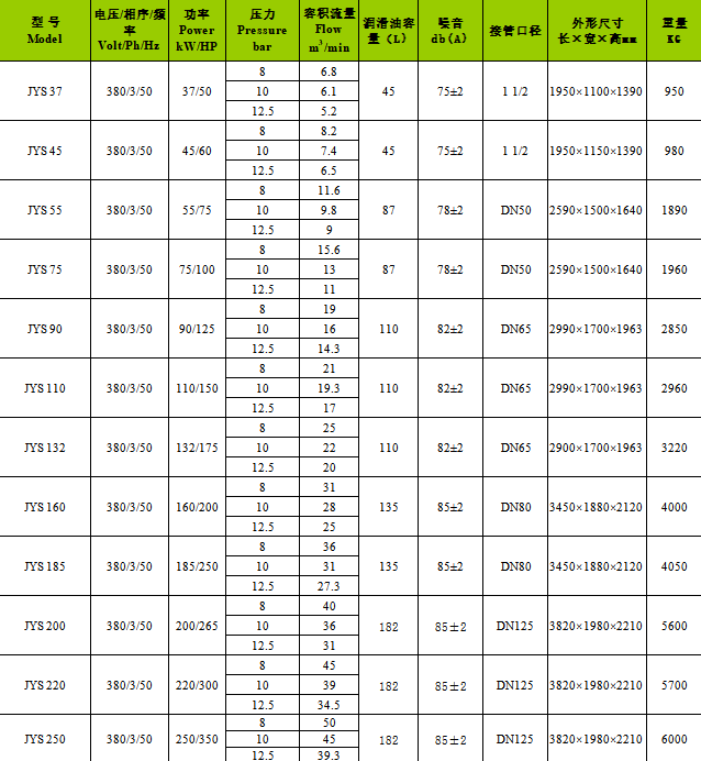 產品名稱:37kW 雙級壓縮螺桿變頻/工頻空壓機 JYS37